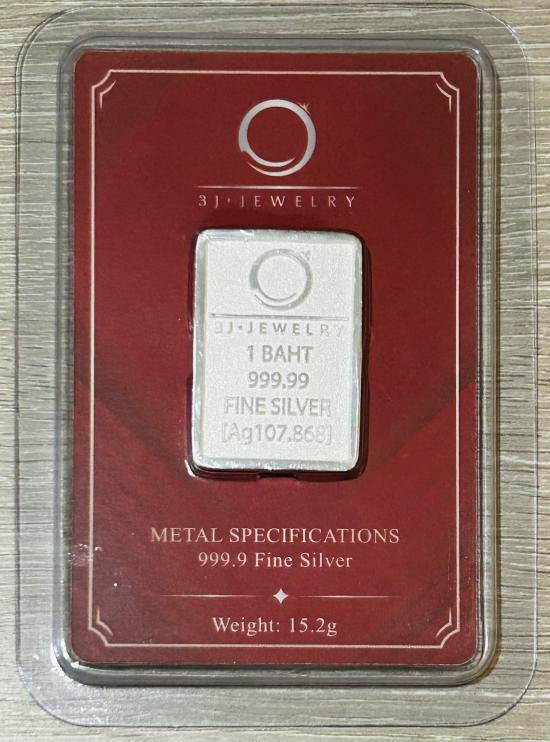 วัดใจ เงินแท่ง 999.9% หนัก 1 บาท ยี่ห้อ 3j jewelryในการ์ด พร้อมบัตรรับประกันสินค้า