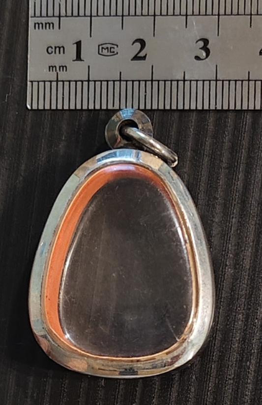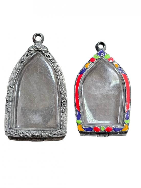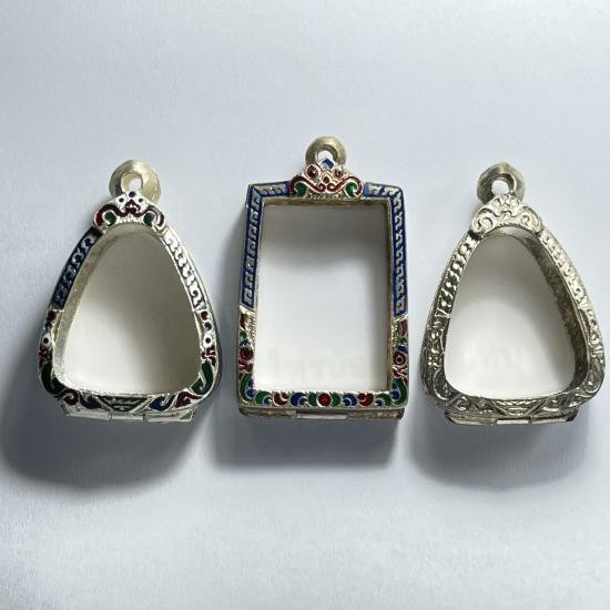 ตลับเงินยกซุ้ม สภาพดีเหมือนใหม่ ใส่เหรียญหล่อเจ้าสัว วัดกลางบางแก้ว และพิมพ์เจ้าสัวเกจิอื่นๆขนาดใกล้เคียง ขนาด 2.1x3.7 ซม. |