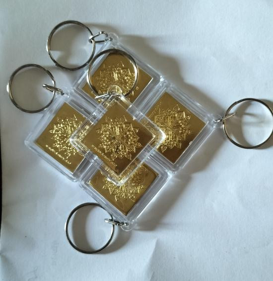พวงกุญแจกรอบพลาสติก ยันต์เกราะเพชร 1ชุด5อัน |