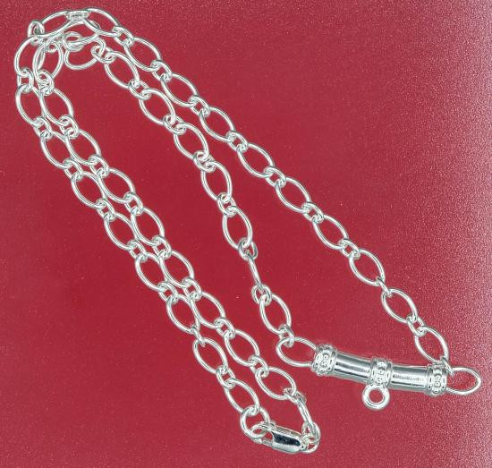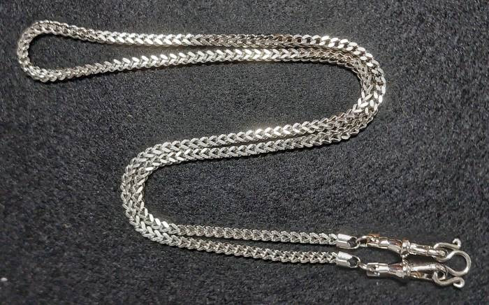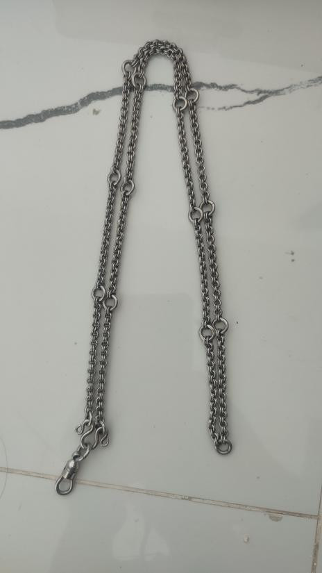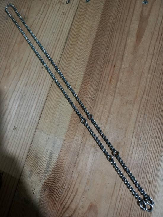 สร้อยสแตนเลสผ่าหวาย หนา 4.2 มิล ยาว 26 นื้ว พร้อมสปริงก้ามปูสแตนเลส1คู่ .. |