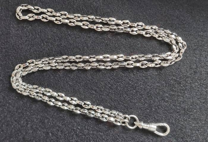 สร้อยเม็ดเงินแท้เก่า สั่งทำ ยาว 36 นิ้วสวมหัวได้ หนัก 23 กรัมกว่า สวยสมบูรณ์ แขวงพระด้านหลังได้ |