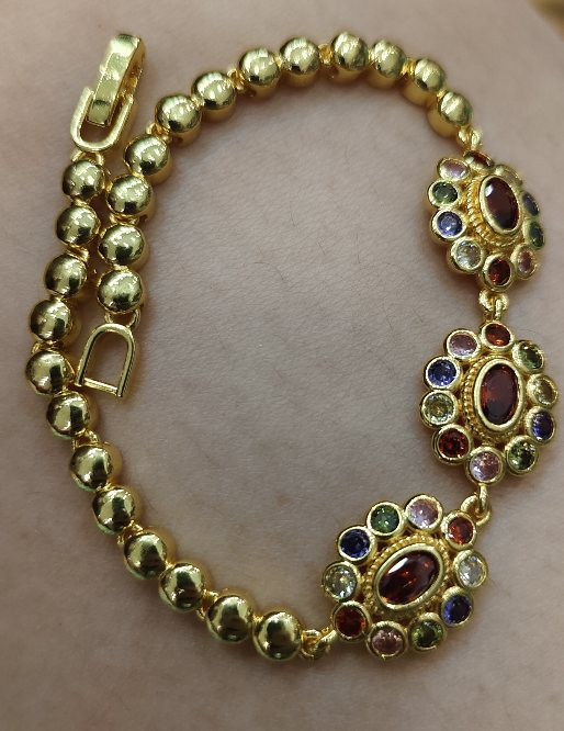 เทขาดทุน+ กำไลข้อมือนพเก้ายาว 7.นิ้ว งานจิวเวลลี่ชุบทองแท้ |