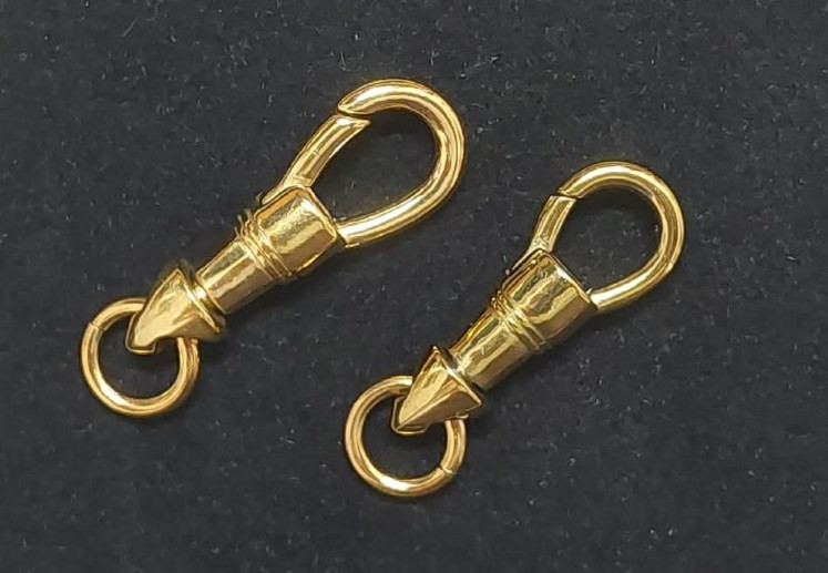 สปริงก้ามปูสแตนเลส + สปริงก้ามปูสแตนเลสเลเซอร์ทอง หมุนได้ ขนาดไม่รวมห่วง 2.6 ซ.ม. |
