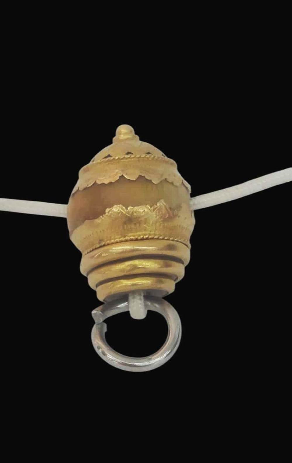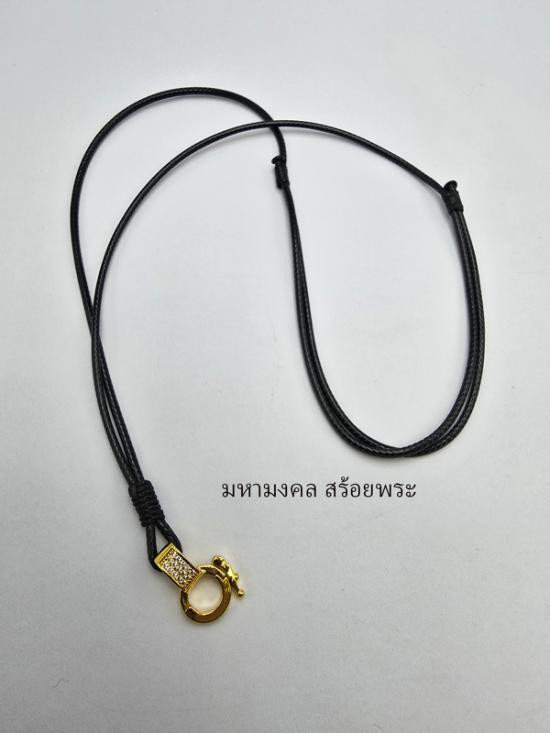 สร้อยเชือกร่ม แต่งด้วยงานทองเลเซอร์ หัวทองเลเซอร์ฝั่งพลอย สวยๆ ครับ ยาว 24 นิ้ว |