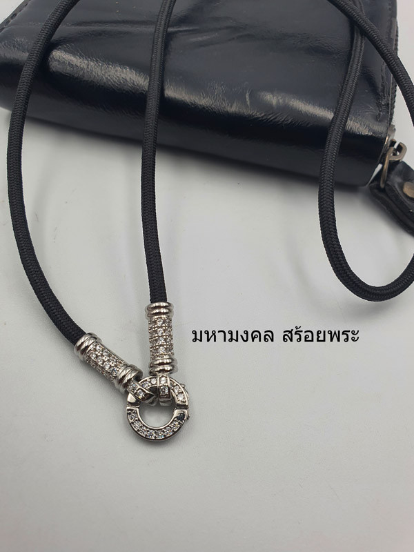 วัดใจ สร้อยเชือกร่ม 3.5 มิล แต่งด้วยหัวพลอย พร้อมรังดุม สำหรับแขวนพระ สร้อยยาว 24 นิ้ว |