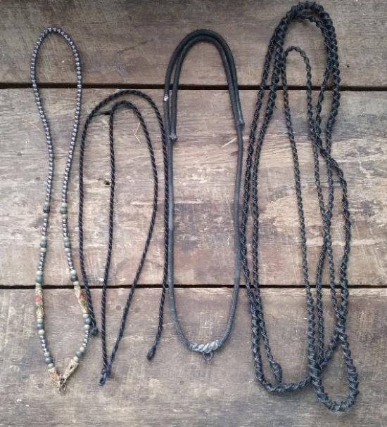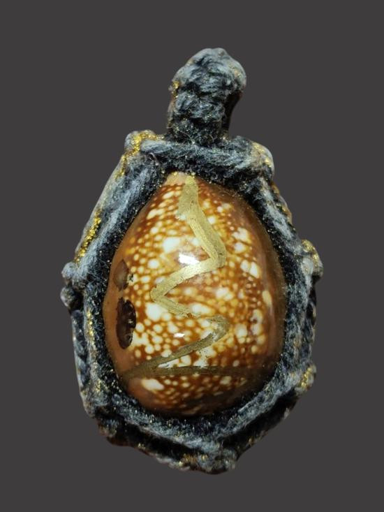สร้อยเชือกร่มแต่งด้วย ปี๊เซียะทองเลเซอร์ พร้อมก้ามปูสปริง สำหรับแขวนพระ 2 องค์ ยาว 24 นิ้ว |