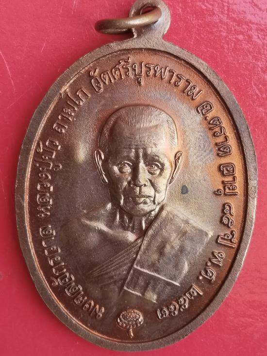 เหรียญรุ่นแรก หลวงปู่บัว วัดศรีบูรพาราม จ.ตราด ปี 2523 (พิมพ์แก้มขีด) เนื้อทองแดง |