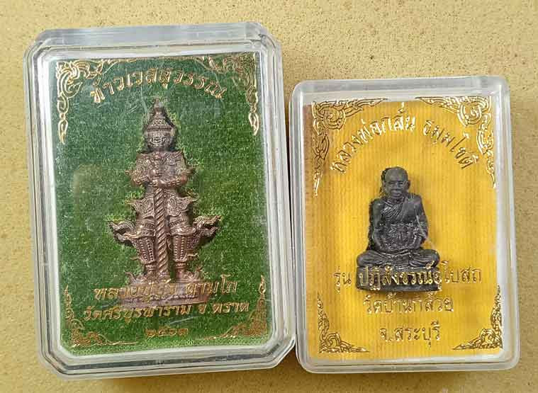รูปหล่อท้าวเวสสุวรรณรุ่นแรก .เนื้อสัมฤทธิ์ หมายเลข3942 หลวงปู่บัว วัดศรีบุรพาราม + รูปหล่อหลวงพ่อกลั่น วัดพระญาติ ออก วัดบ้านกล้วย สระบุรี หลวงปู่ร่วมปลุกเสก |