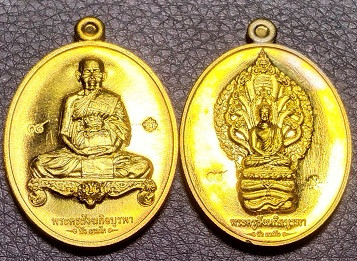เหรียญมงคลมหาลาภ เนื้อทองทิพย์ พิมพ์นาคปรก+พิมพ์นั่งโต๊ะเต็มองค์ หมายเลข 3592พระครูสังฆกิจบูรพา(หลวงปู่บัว ถามโก) วัดศรีบุรพาราม(เกาะตะเคียน) จ.ตราด |