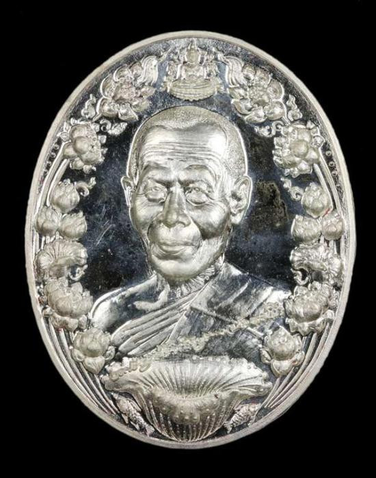 เหรียญเพชรบูรพา หลวงปู่บัว ปี2555 เนื้อเงินขัดเงา หมายเลข 87 |