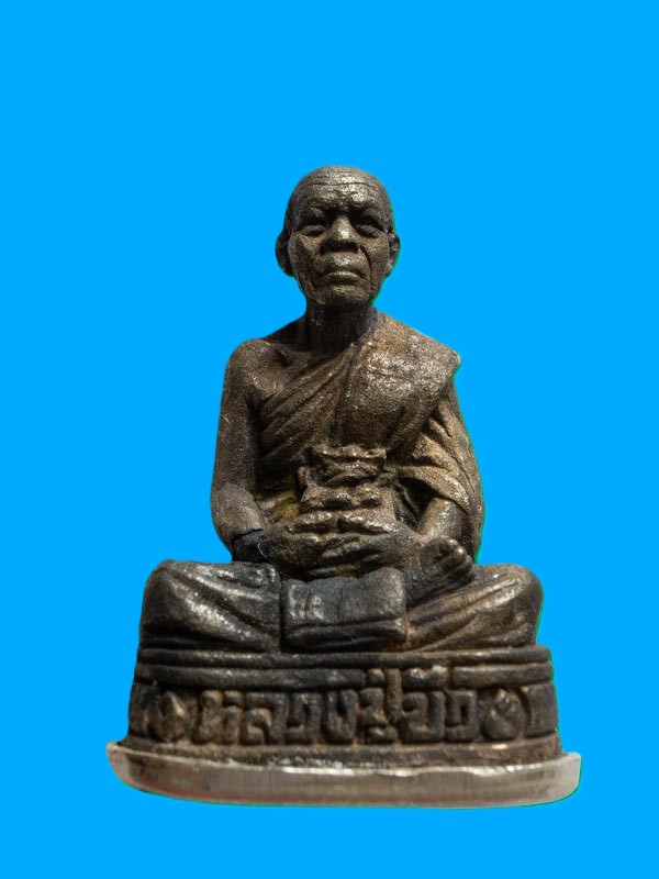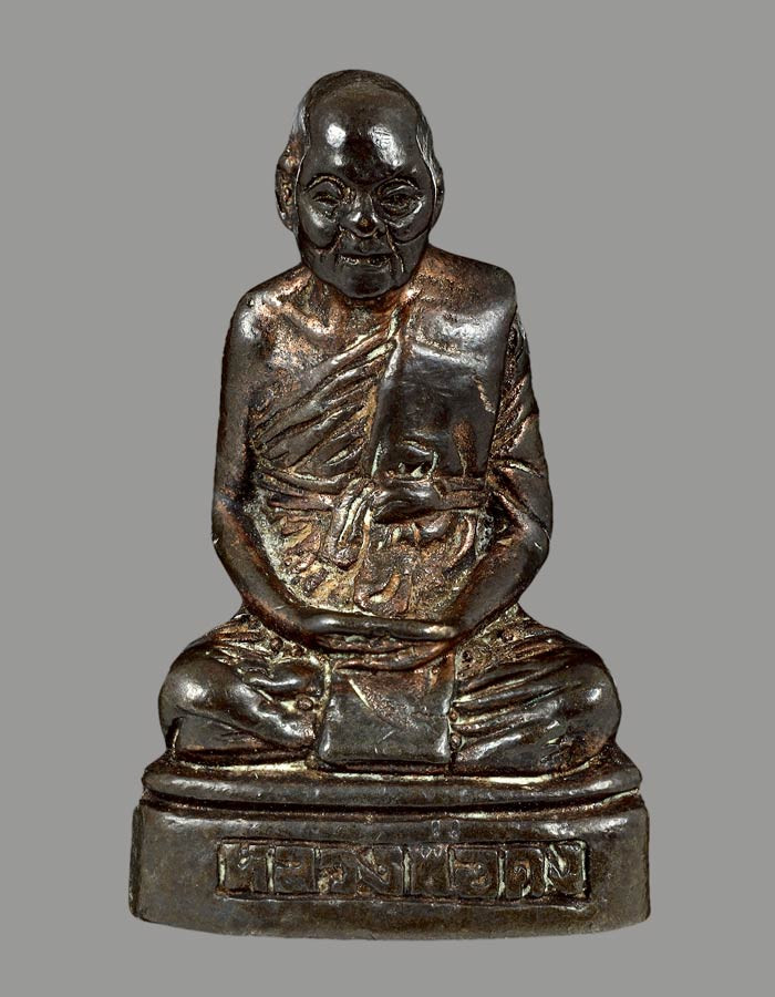 รูปหล่อโบราณรุ่นแรก เนื้อนวโลหะ หมายเลข 900 หลวงปู่บัว ถามโก |