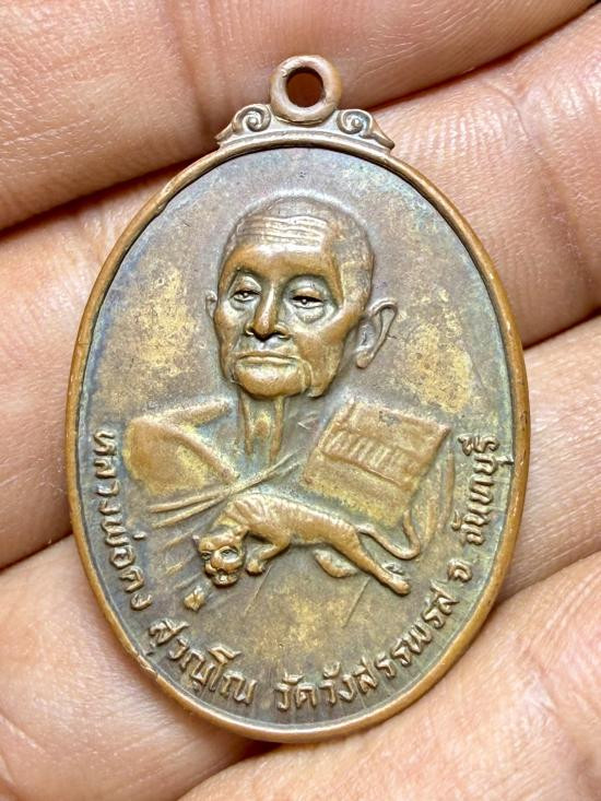 เหรียญตอปิโด หลวงพ่อคง วัดวังสรรพรส พิมพ์ยืนหลังเสือ ปี2517 เนื้อทองแดง |