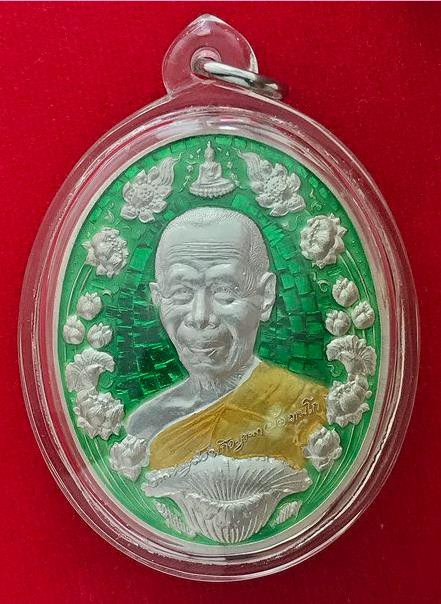 เหรียญเพชรบูรพา หลวงปู่บัว ปี2555 เนื้อเงินลงยาสีเขียว หมายเลข 62 |