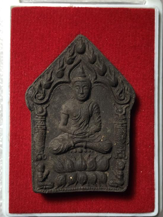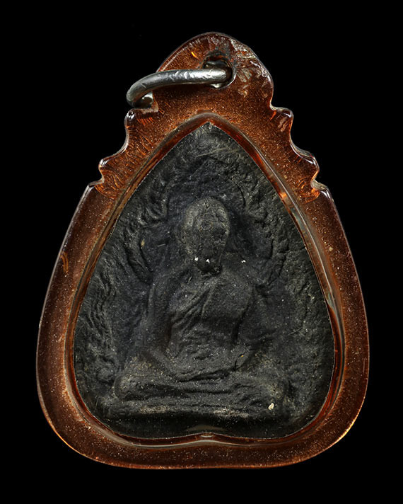 พระปิดตาห้าเหลี่ยม เนื้อดำ หลังฝังตะกรุดทองเหลือง หลวงปู่บัว ถามโก ปี 2541 |