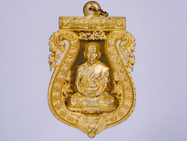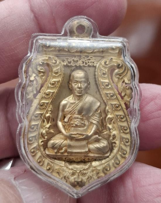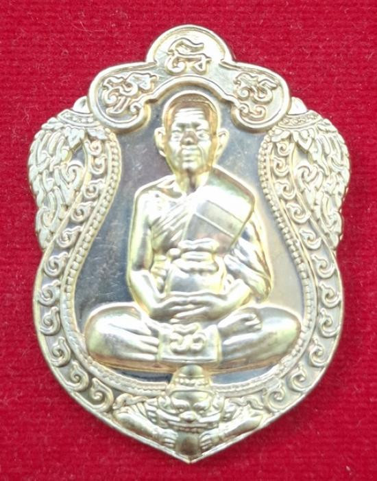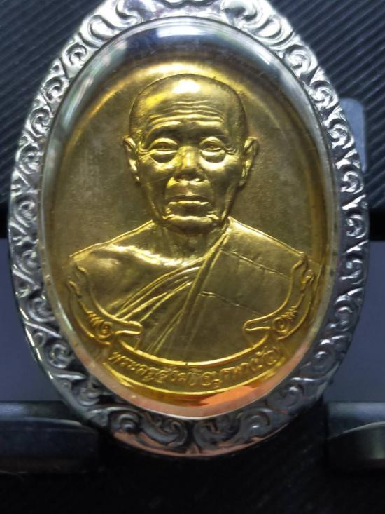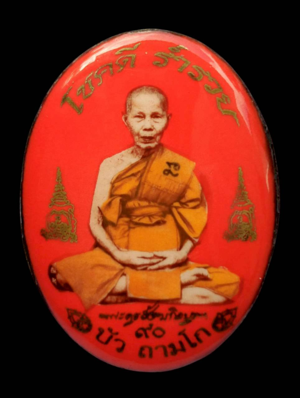 ล็อกเก็ตพิมพ์ทองฉากแดงหลังเงิน หมายเลข104 รุ่นโสฬสมงคล 90 ปี โชดดีร่ำรวย พระครูสังฆกิจบูรพา(หลวงปู่บัว ถามโก) วัดศรีบุรพาราม(เกาะตะเคียน) จ.ตราด |
