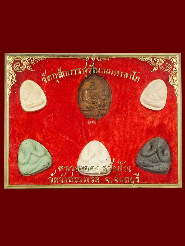 วัดใจ ชุดพระปิดตาหลวงพ่อคง วัดวังสรรพรส เนื้อผงพุทธคุณ 5 องค์+เหรียญ รุ่น5 เสือ พร้อมกล่องเดิม |