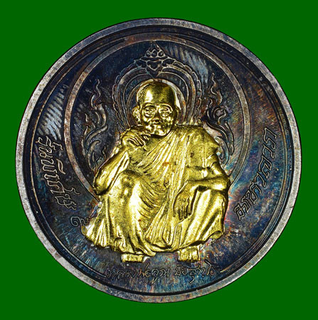 หลวงปู่มหาศิลา รุ่นยอดรวยรวย เนื้อเงินพระราชทองคำ ผิวกระจกใสวิ้งๆ จมูก100 เลข1012 กล่องเดิม คัดสวยๆ |