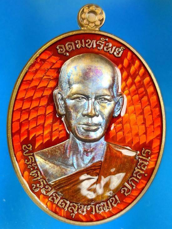 1200-เคาะเดียว เหรียญอุดมทรัพย์ พระอาจารย์ต้อม วัดท่าสะแบง ชุดล้น เนื้อมหาชนวนหน้ากากนวะ ลงยาส้ม ลงยาจีวร จัดสร้าง290เหรียญ เลข๒๙ สองหลักโซนวันเกิด