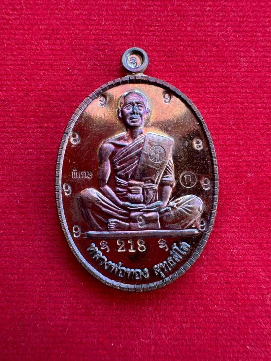 เหรียญหลวงพ่อทอง วัดบ้านไร่ รุ่นสร้างบารมี 66 เหรียญแจกวันเกิด เนื้อทองแดงมันปู โค้ตพิเศษ 9รอบ (สร้าง300 เหรียญ) หมายเลข 218 +กล่อง