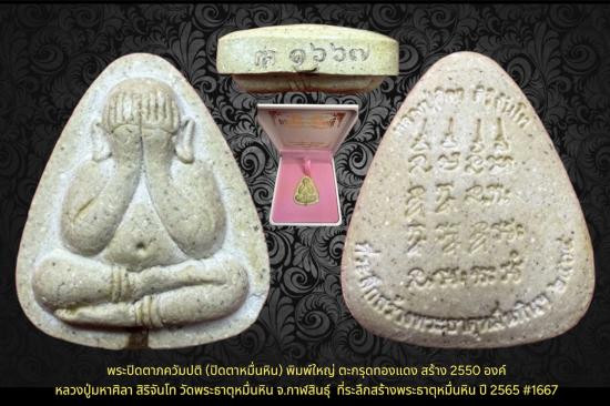 พระปิดตาภควัมปติ (ปิดตาหมื่นหิน) พิมพ์ใหญ่ ตะกรุดทองแดง สร้าง 2550 องค์ หลวงปู่มหาศิลา สิริจันโท วัดพระธาตุหมื่นหิน จ.กาฬสินธุ์ ที่ระลึกสร้างพระธาตุหมื่นหิน ปี 2565 #1667 เคาะเดียว