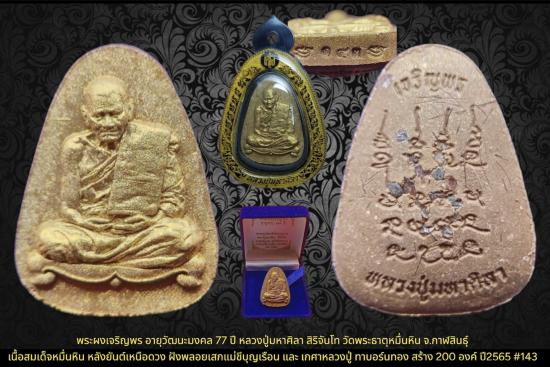 พระผงเจริญพร อายุวัฒนะมงคล 77 ปี หลวงปู่มหาศิลา สิริจันโท วัดพระธาตุหมื่นหิน จ.กาฬสินธุ์ เนื้อสมเด็จหมื่นหิน หลังยันต์เหนือดวง ฝังพลอยเสกแม่ชีบุญเรือน และ เกศาหลวงปู่ ทาบอร์นทอง สร้าง 200 องค์ ปี2565