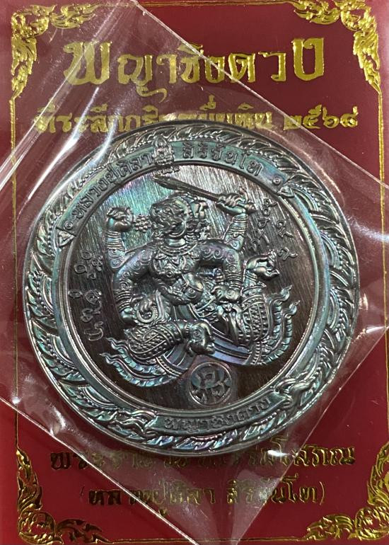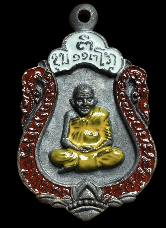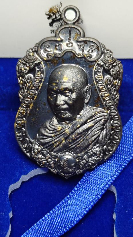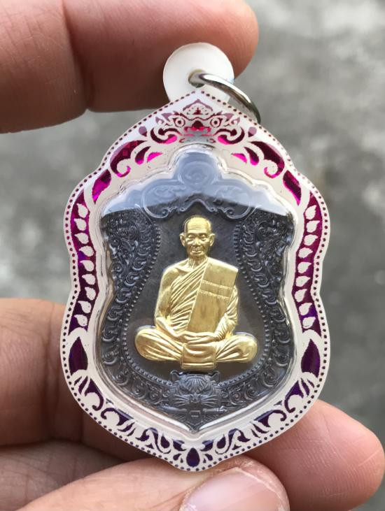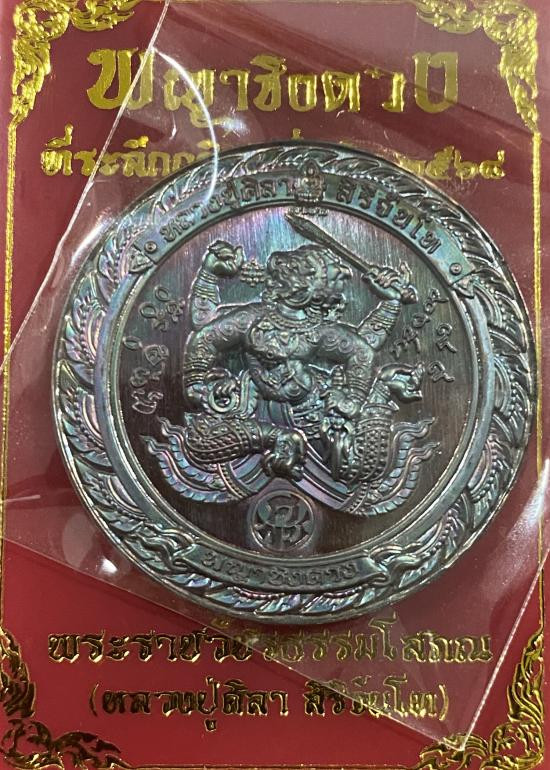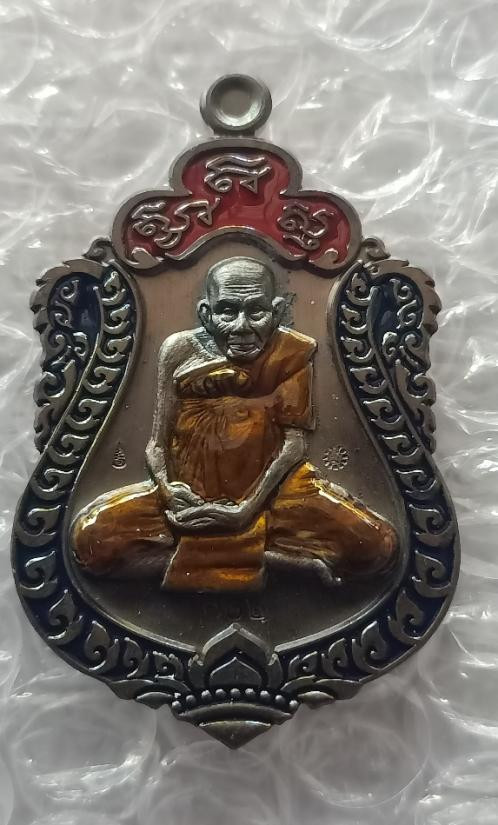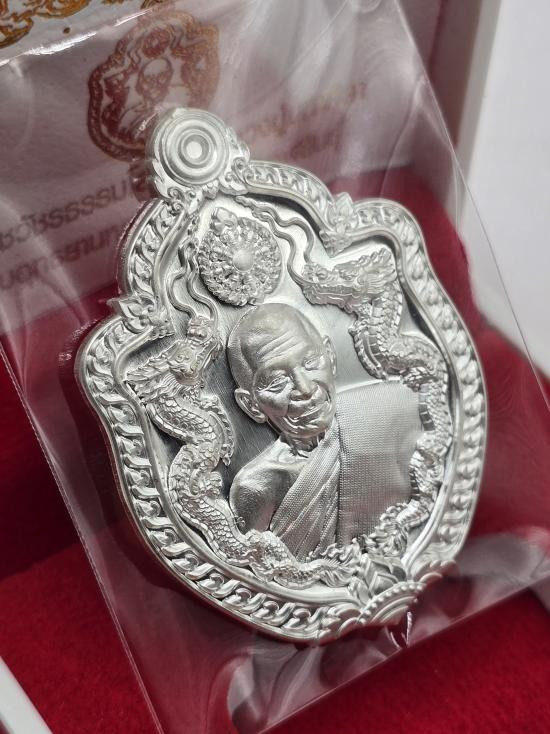 หลวงปู่จื่อ วัดเขาตาเงาะฯ เหรียญชนะจน ปี2567 เนื้อเงิน ลงยาสีแดง หน้ากากทองคำ no.15 มีกล่อง