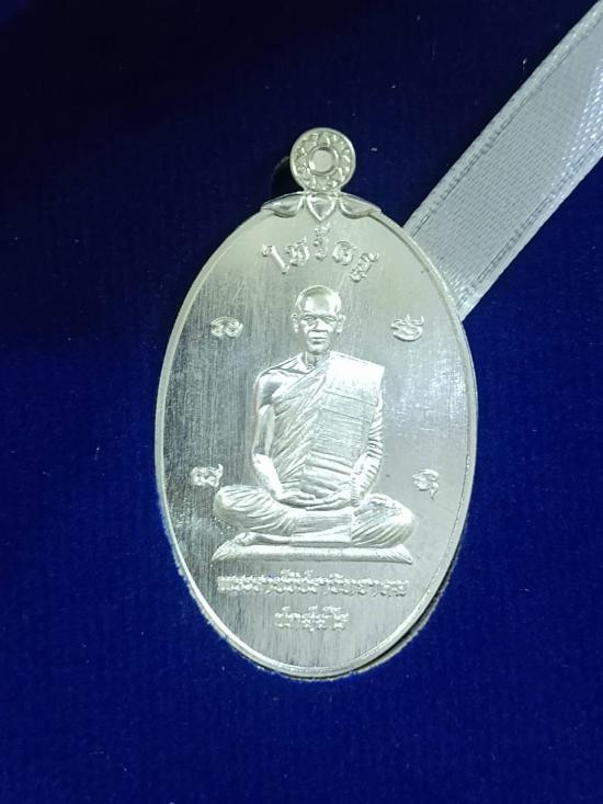 เหรียญเสมา รุ่นเศรษฐีสมปรารถนา(ฐานบัว) หลวงปู่สอ ขันติโก อายุ 113 เลี่ยมเงินแท้พร้อมใช้ เลข 138 รวม 12