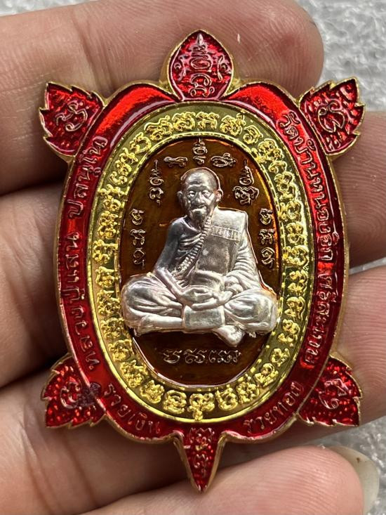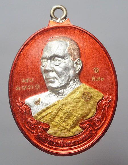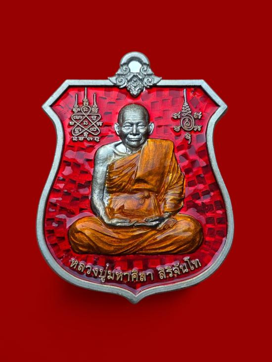เหรียญเสมามังกรคู่ อายุวัฒนามงคล81ปี เนื้อฝาบาตร ลงยาแดงขอบเงิน หลวงปู่ศิลา ศิริจันโท