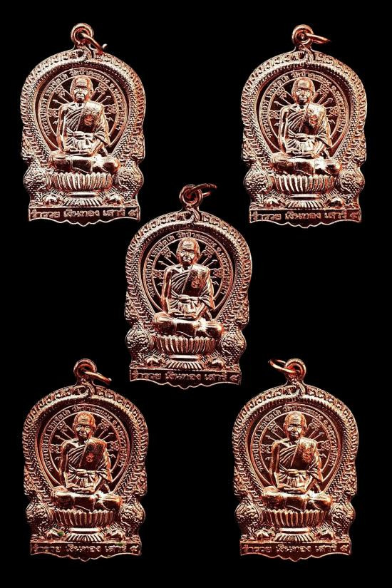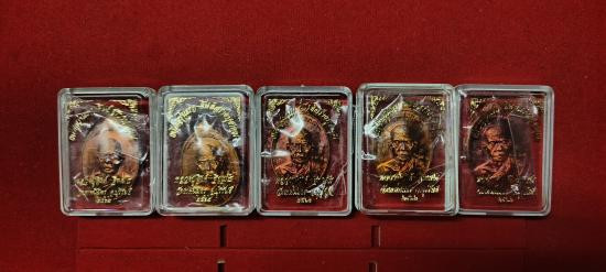 ชุด 5 องค์...เหรียญนั่งพานเสาร์ห้ามหาบารมี รุ่นแรก เนื้อทองแดง ปี 2554 หลวงปู่สิงห์ วัดบ้านป่าตะแบง จ.นครราชสีมา พร้อมซองรูปใบฝอยเดิมจากวัด