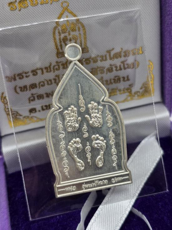 เหรียญ รวยฟ้าหยาด รอยมือ รอยเท้า ปี67 หลวงปู่มหาศิลา หลวงปู่ศิลา สิริจันโท ธรรมอุทยาน วัดพระธาตุหมื่นหิน จ.กาฬสินธุ์ เนื้อเงินบริสุทธิ์ เลข ๔๖๘ มีกล่องเดิม