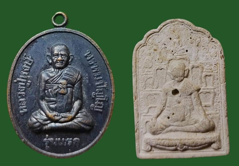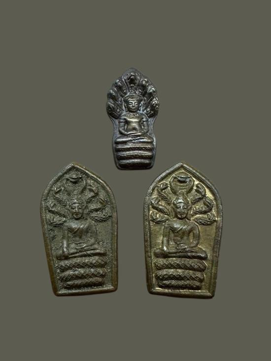 หลวงปู่อ่อนสา สุขกาโร ปรกใบมะขามรุ่นแรก 2 องค์ ปรกเหล็กกล้า 1 องค์ สภาสวยเดิมครับ