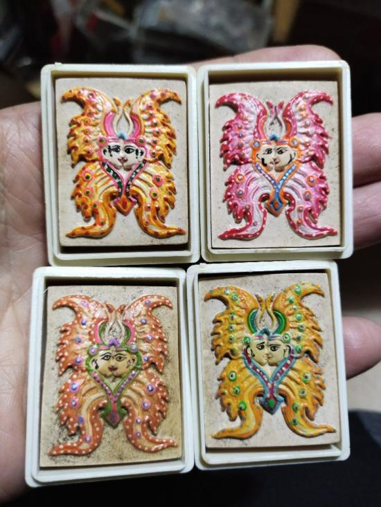 พระผงเทพภมรจำแลง ครูบากฤษณะ เพ้นท์มือหลังฝังตะกรุดพลอยเสก จานหมึกแดงรอบองค์ ยก 4 องค์ วัดใจเคาะเดียว