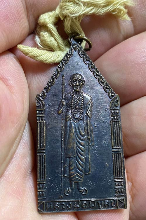 เหรียญรุ่นแรก หลวงพ่อทอง สุทธสีโล วัดพระพุทธบาทเขายายหอม จ.ชัยภูมิ ผิวรมดำ เลขโค็ต ๕๓๘