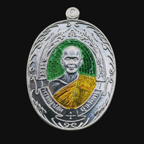 ***เหรียญเจริญสุข เนื้อเงินลงยาสีเขียว (หมายเลข 22) หลวงปู่บุญ สวนนิพพาน วัดปอแดง จ.นครราชสีมา ปี 2557***