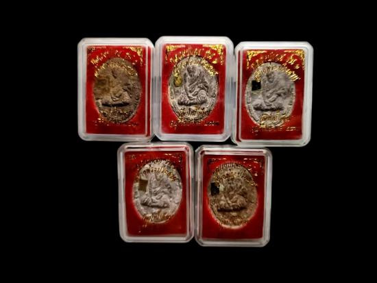 หลวงปู่มหาศิลา สิริจันโท พระปิดตาพังพระกาฬ รุ่นรวยโชคอนันต์ ชุดกรรมการลงยา3เหรียญ ไม่แกะซีลลุ้นเลขสวย