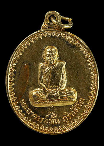เหรียญพระอาจารย์ฝั้น อาจาโร ปี 2514 รุ่น17 พิมพ์พระอาจาร์ยมั่น กะไหล่ทอง ตอกโค๊ด "กรรมการ" พบเจอน้อย หายาก + บัตรรับรอง G-PRA