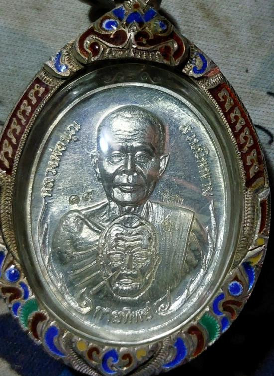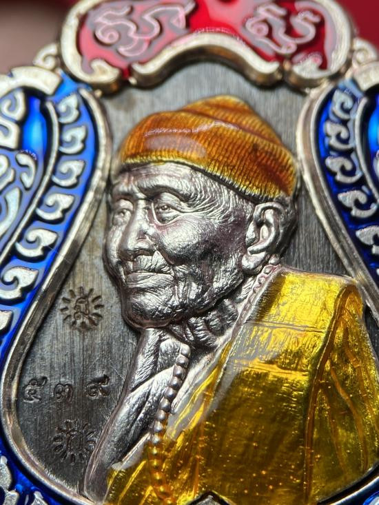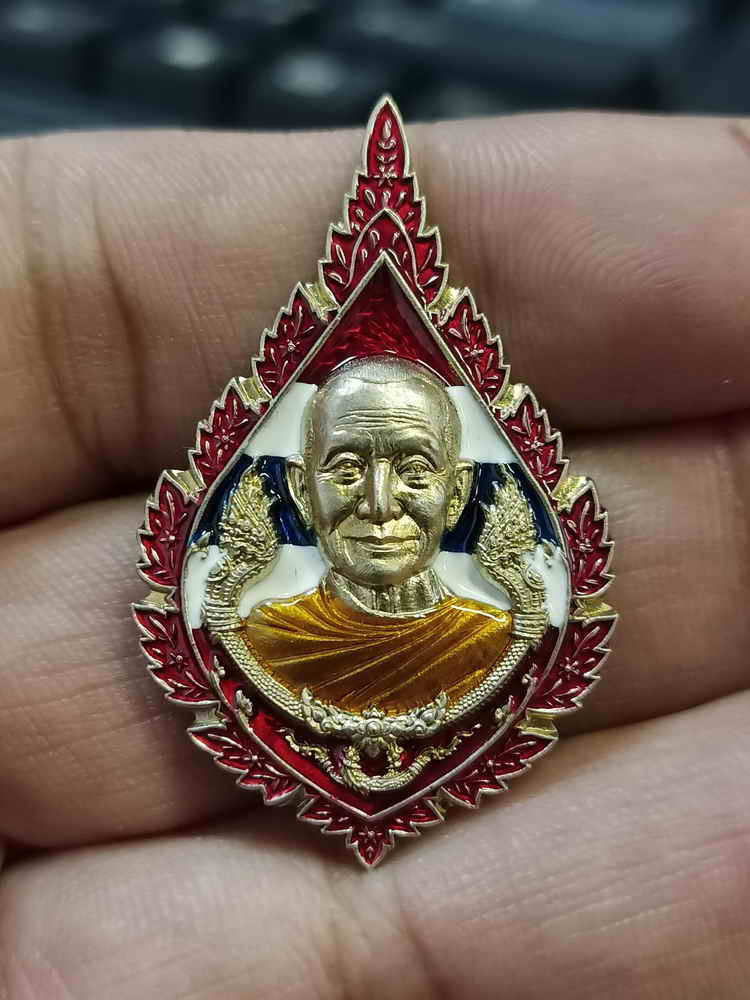 3-1 วัดใจ 100 เหรียญพัดยศ รุ่นเลื่อนสมณศักดิ์ หลวงปู่จื่อ วัดเขาตาเงาะอุดมพร จ.ชัยภูมิ อัลปาก้า ลงยาลายธงชาติ หมายเลข 579 กล่องเดิม