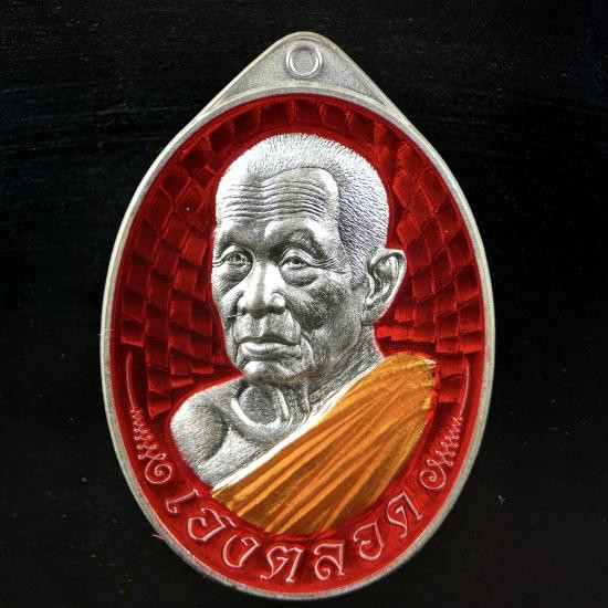 เหรียญเหนือดวง หลวงพ่อทอง เนื้อเงินลงยาธงชาติ |
