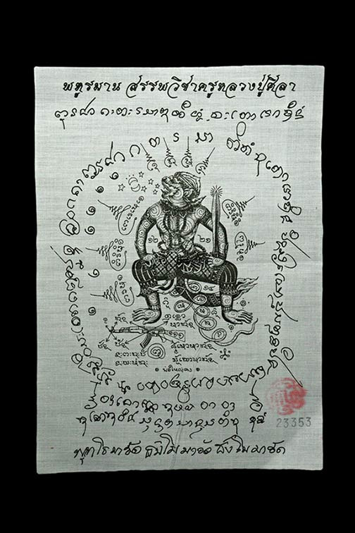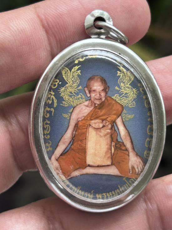 รูปภาพห้อยคอเต็มองค์ หลังบรรจุจีวร หลวงปู่ศิลา สิริจันโท หมายเลข 12268 พร้อมเข็มกลัดวัดพระธาตุหมื่นหิน และสายสิน |