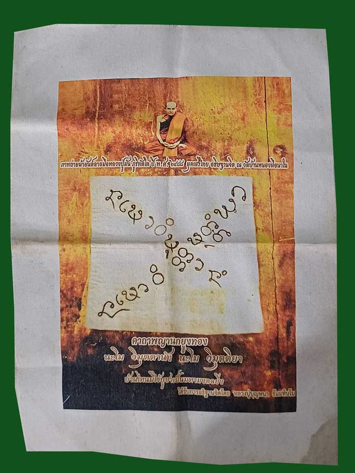 ผ้ายันต์พระคาถานกยูงทอง ขนาด 26 x 35 ซม. หลวงปู่บุญหนา ธัมมทินโณ + หลอดยาดมลายไทย แจกในงานทำบุญวันเกิดหลวงปู่หลุย จันทสาโร ที่ กม.28 กรุงเทพฯ(แจกเฉพาะแขกผู้ใหญ่) |