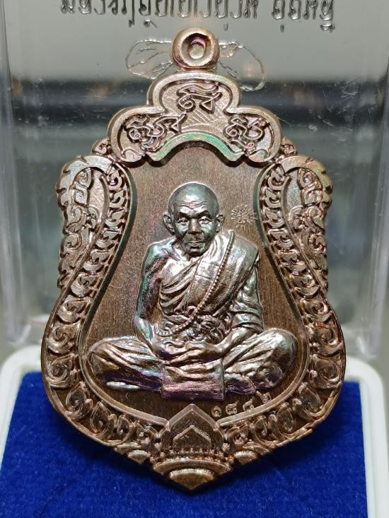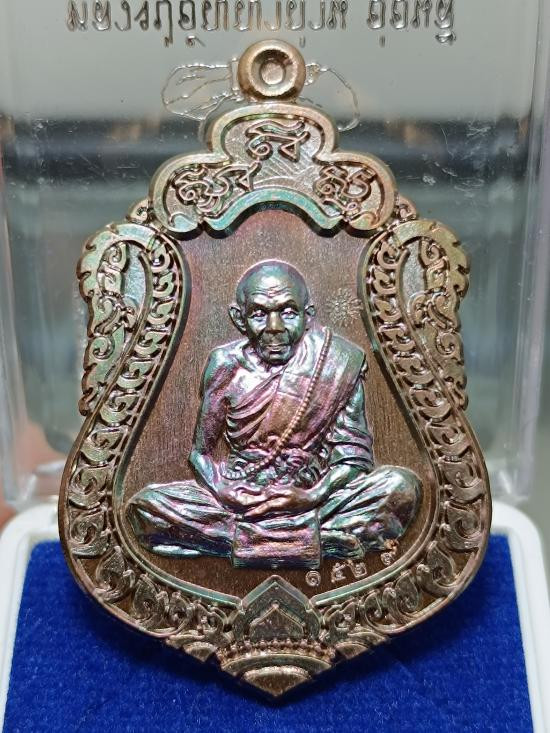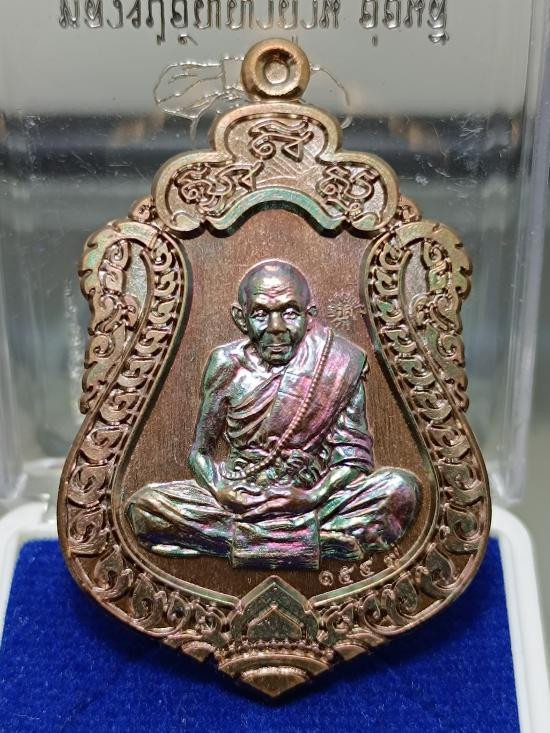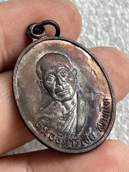 25-เหรียญรุ่นแรก หลวงพ่อกอง วัดระเบาะ จ.ศรีสะเกษ ปี2514 เนื้อทองแดงรมดำผิวรุ้ง |