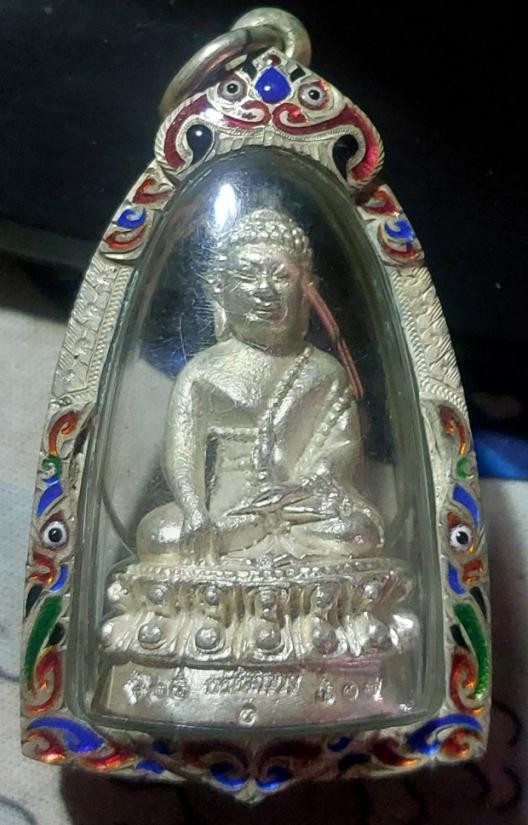พระชัยวัฒน์ กลวงปู่นิยม กมโล เนื้อเงิน เลี่ยมเงินลงยา สั่งทำมิอ วัดแจ้งนอก ปี2555 |
