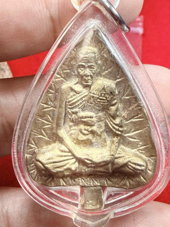 ใบโพธิ์รูปเหมือนหล่อโบราณดินไทยนำฤกษ์ หลวงพ่อเกิด วัดโพธิ์แทน จ.นครนายก เนื้อทองระฆัง