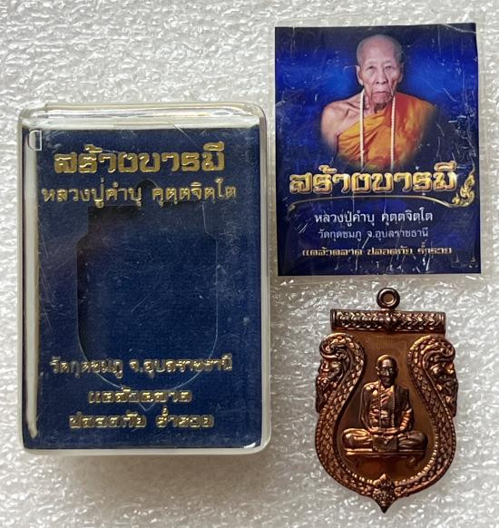 เหรียญสร้างบารมีหลวงปู่คำบุ วัดกุดชมพู อุบลราชธานี แคล้วคลาด ปลอดภัย ร่ำรวย สวยกล่องเดิม