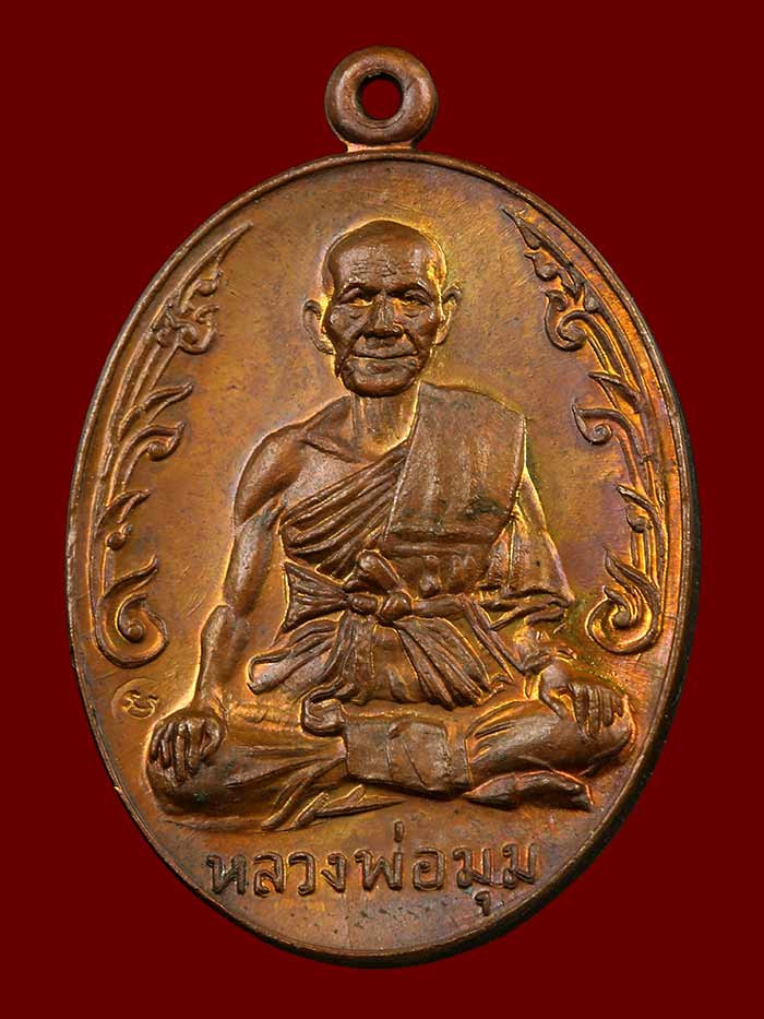 วัดใจ เหรียญนักกล้าม หลวงพ่อมุม วัดปราสาทเยอร์ เนื้อทองแดง ปี2517 บล๊อคประคตสั้น |