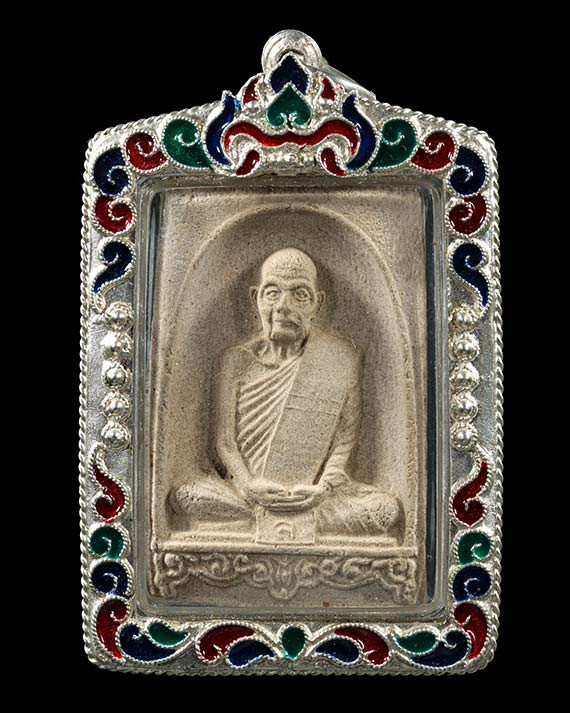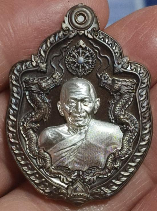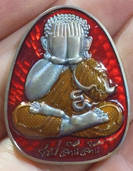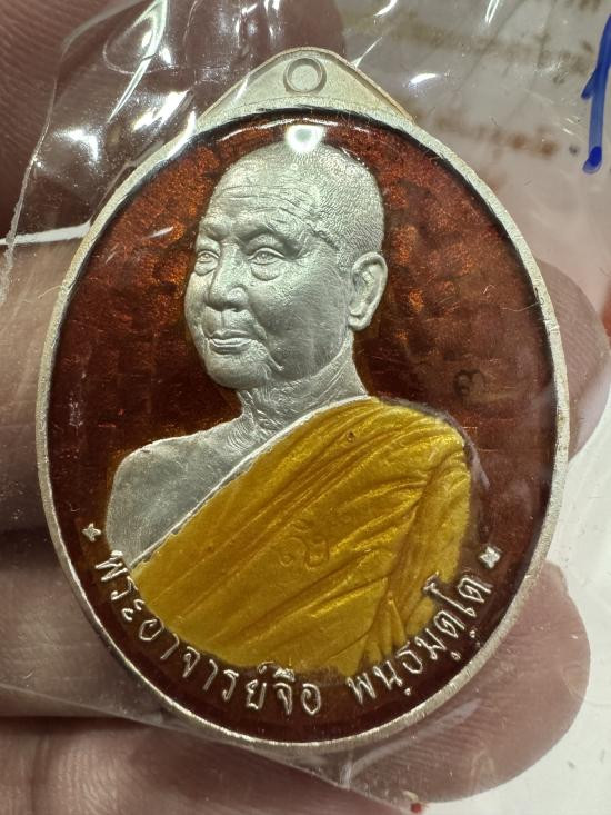 หลวงปู่จื่อ วัดเขาตาเงาะฯ รุ่นประวัติศาสตร์ไตรภาคี ปี2558 เนื้อเงิน ลงยาสีแดง no.13 มีกล่อง |