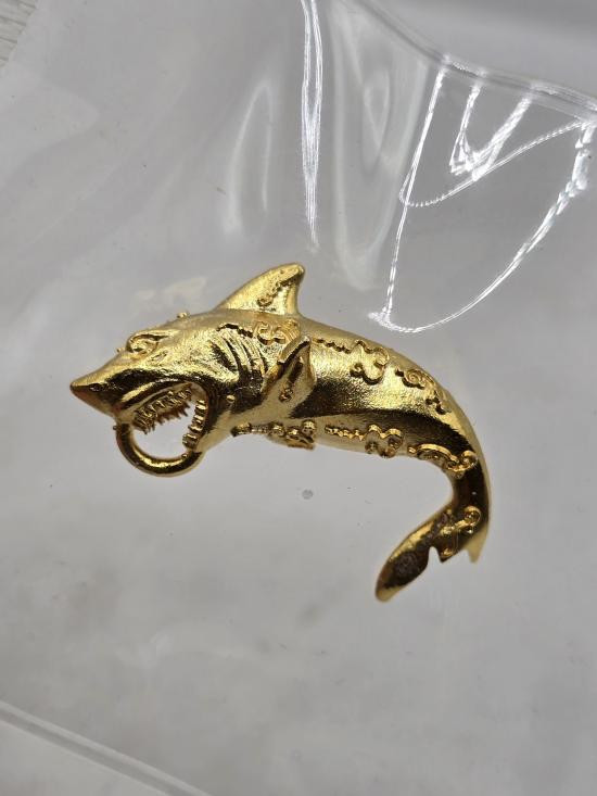 ฉลามเรียกทรัพย์ หลวงปู่มหาศิลา หลวงปู่ศิลา สิริจันโท ธรรมอุทยาน วัดพระธาตุหมื่นหิน จ.กาฬสินธุ์ เนื้อกะไหล่ทอง ชุบทองคำแท้ เลข ๑๖๔๗ ไม่มีกล่องเดิม |