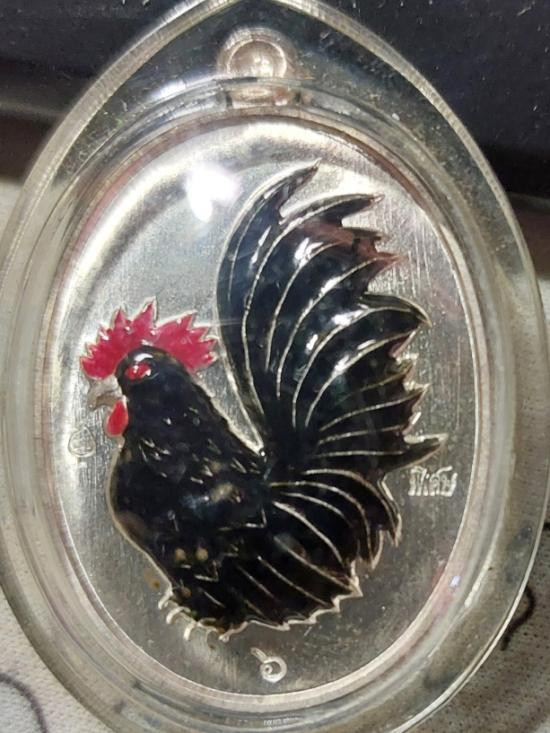 ไก่แจ้ดำ มหาลาภ บุญคูณบุญ หลวงปู่บุญ เนื้อเงินลงยา เลข ๖ ลอยจารหลวงปู่ สวนนิพพาน วัดปอแดง ปี2558 |