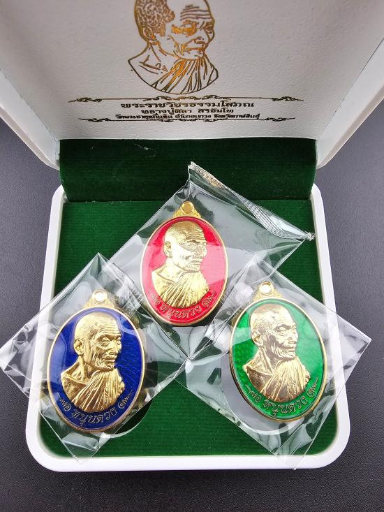 หลวงปู่มหาศิลา ไหว้ครูปี2569 รุ่น หนุนดวง (ชุดกรรการ3องค์) เนื้อทองลำอู่ชุปทอง 24k ลงยา แดง,เขียว,ฟ้า เลขเดียวกันทั้งชุด 73 กล่องครบ *(ชุดปกติคละเลข)* |