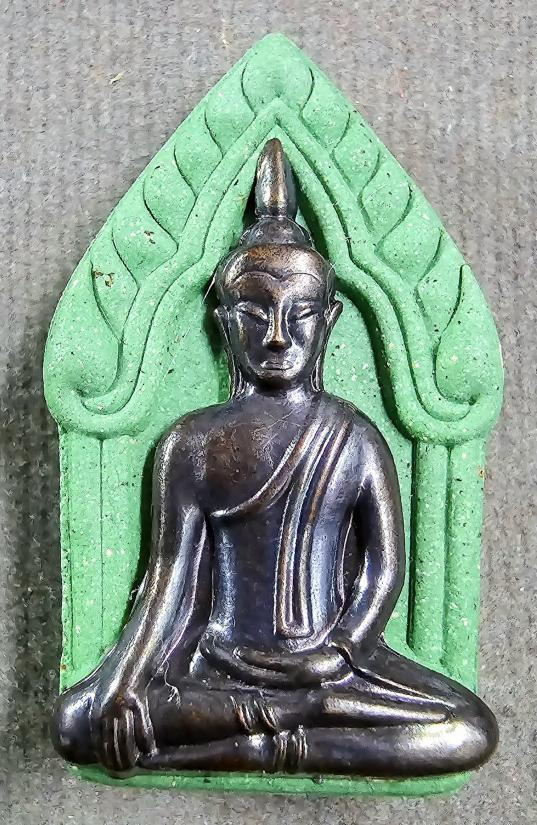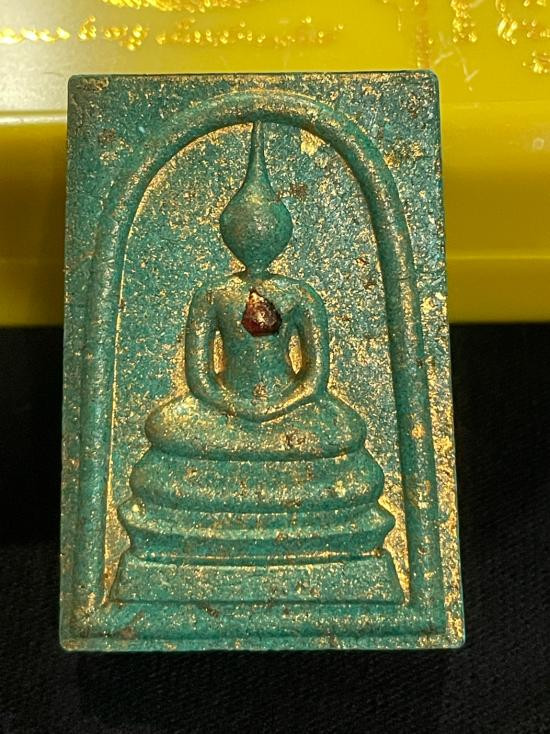 พระผงขุนแผน(พิมพ์กลาง) รุ่น "ศิลา พรมหามงคล" หลวงปู่มหาศิลา สิริจันโท ออกวัดโพธิ์ศรีสะอาด เนื้อเขียวมรกต หน้ากากทองแดงผิวไฟ หลังโค๊ดหมายเลข ๙๗...โค๊ดอักษร "ศ" ในรัศมี มีเพียง 1 องค์ในลัง รุ่นนี้เป็น |